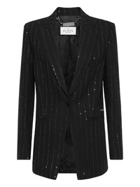 crystal-embellished blazer Highlights - Black - Front button fastening - Two front jetted pockets - Silver-tone logo plaque - Long sleeves Made in Italy Composition Outer: Viscose 81%, Wool 15%, Polyester 2%, Polyamide 2% Lining: Acetate 52%, Viscose 48%