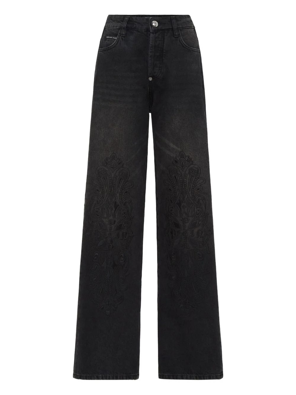 paisley-embroidered jeans Highlights - Dark grey - Paisley embroidery - Button fly fastening - Logo patch Imported Composition Fabric 100% Washing instructions Read Manufacturer Guidelines