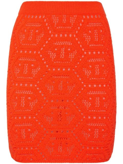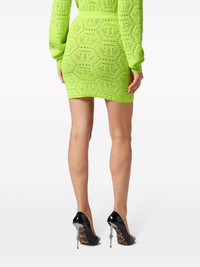 monogram-knit mini skirt Highlights - Fluorescent yellow - Wool blend - Patterned intarsia knit - Perforated detailing - Slip-on style - Thigh-length - Straight hem Made in Italy Composition Wool 50%, Acrylic 50% Washing instructions Read Manufacturer Guidelines