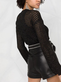 pin-embellished leather shorts black leather high waist belt loops front button and zip fastening classic five pockets Imported Composition Outer: Leather 100% Lining: Polyester 100% SIZE & FIT Model measurements Height 5 ft 10 in(1.79 m) Bust/Chest 34.25 in(87 cm) Hips 37 in(94 cm) Waist 25.19 in(64 cm) FittingInformation This piece fits small – you might want to get one size up Designed to be fitted at the waist and hips, loose over the leg Made with a mid-weight non-stretch fabric Washing instructions Specialist Cleaning