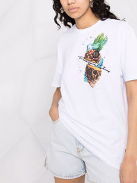 Pineapple Skies T-shirt Philipp Plein re-imagines the American Dream for SS22 celebrating a West coast Malibu to East coast Miami jet-setting lifestyle with tropical patterns. Case in point: this short-sleeved T-shirt is detailed with a pineapple print to the chest that incorporates the designer's skull motif for a signature edge. Imported Composition Polyester 100%, Cotton 100%, Glass Fiber 100% SIZE & FIT Model measurements Height 5 ft 10 in(1.77 m) Bust/Chest 32.67 in(83 cm) Hips 35.43 in(90 cm) Waist 23.62 in(60 cm) FittingInformation This piece fits true to size. We recommend you get your regular size Cut for a loose fit Made with a mid-weight fabric Washing instructions Hand Wash