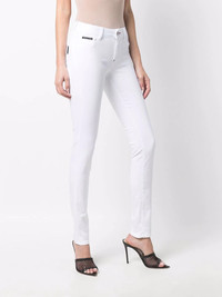 high-rise skinny jeggings Highlights - White - Stretch-cotton - Slim cut - Logo patch to the rear - Belt loops - Front button and zip fastening - Classic five pockets Imported Composition Cotton 92%, Polyester 6%, Spandex/Elastane 2% SIZE & FIT Model measurements Height 5 ft 9 in(1.75 m) Bust/Chest 32.67 in(83 cm) Hips 36.22 in(92 cm) Waist 24.8 in(63 cm) FittingInformation This piece fits true to size. We recommend you get your regular size Cut for a close fit Made with a mid-weight stretch fabric Washing instructions Hand Wash