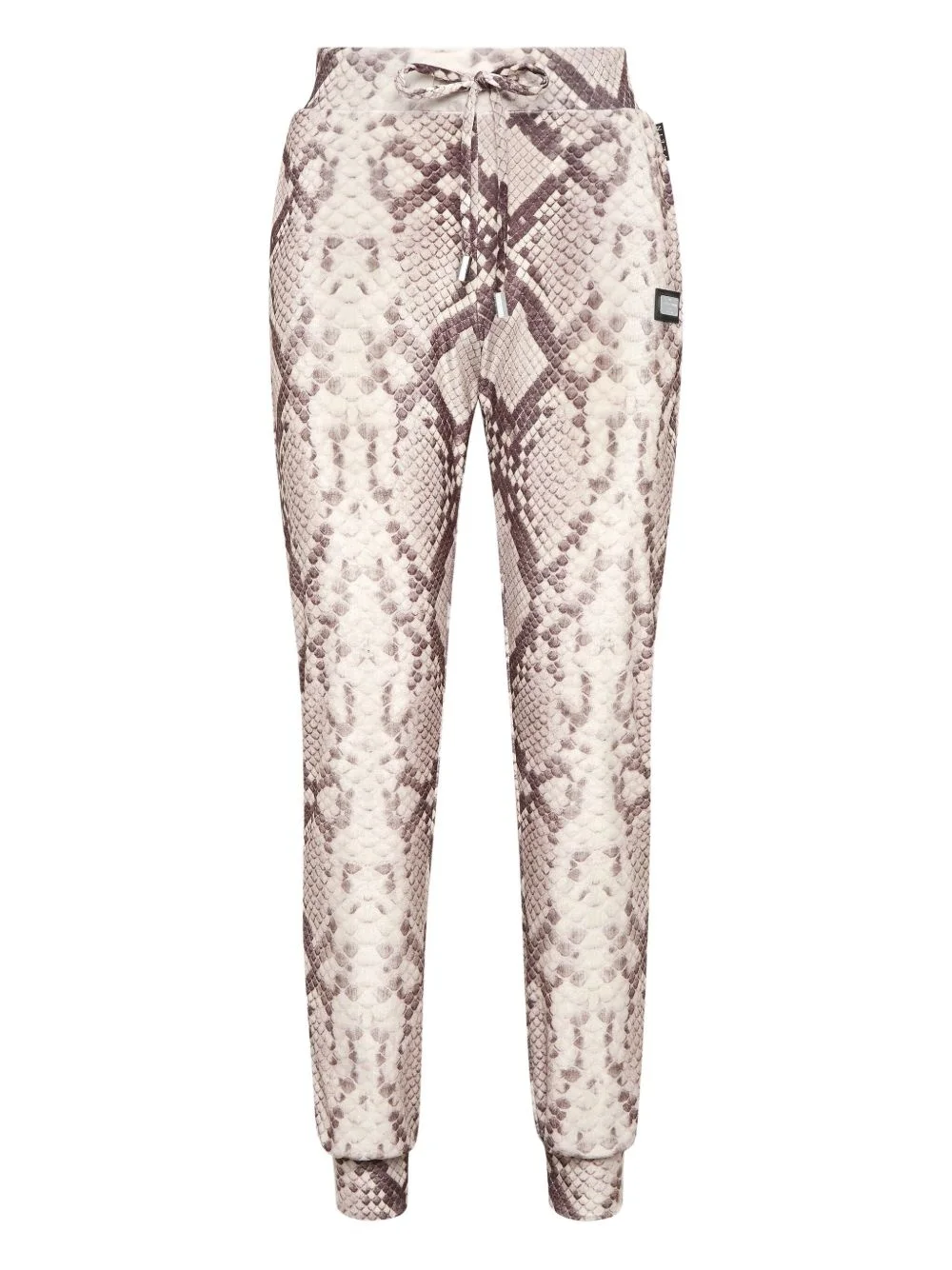 python-print drawstring trousers Highlights - Beige - All-over python print - Elasticated drawstring waistband - Side slit pockets - Logo patch to the leg Imported Composition Polyester 95%, Elastane 5%