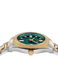 Queen 38mm Highlights - 38mm - Stainless steel - Quartz movement - Round face - Two-tone case - Green guilloche dial - Crystal embellishment - Stainless steel link bracelet - Water resistance up to 50m/5 atm - This item comes with a standard two-year warranty from the brand. Imported SIZE & FIT Measurement DIAMETER 1.49 in(3.8 cm)