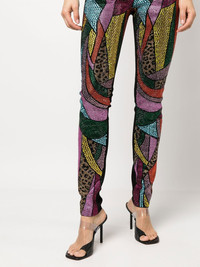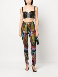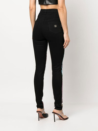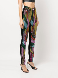 Rainbow patchwork denim jeggings black/multicolour skinny cut crystal embellishment patchwork pattern print belt loops front button and zip fastening classic five pockets Imported Composition Outer: Polyester 100%, Cotton 92%, Elastomultiester 6%, Elastane 2% SIZE & FIT Model measurements Height 5 ft 11 in(1.8 m) Bust/Chest 33.07 in(84 cm) Hips 37.4 in(95 cm) Waist 25.19 in(64 cm) FittingInformation This piece fits true to size. We recommend you get your regular size Cut for a close fit Made with a mid-weight fabric Washing instructions Dry Clean Only