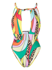 rainbow patchwork-print monokini brown/multicolour stretch-design all-over graphic print cut-out detailing spaghetti straps Be mindful to try on swimwear over your own garments. Made in Italy Composition Polyester 88%, Elastane 12%