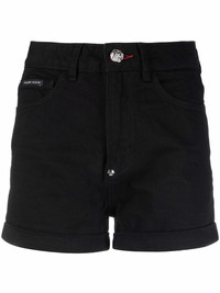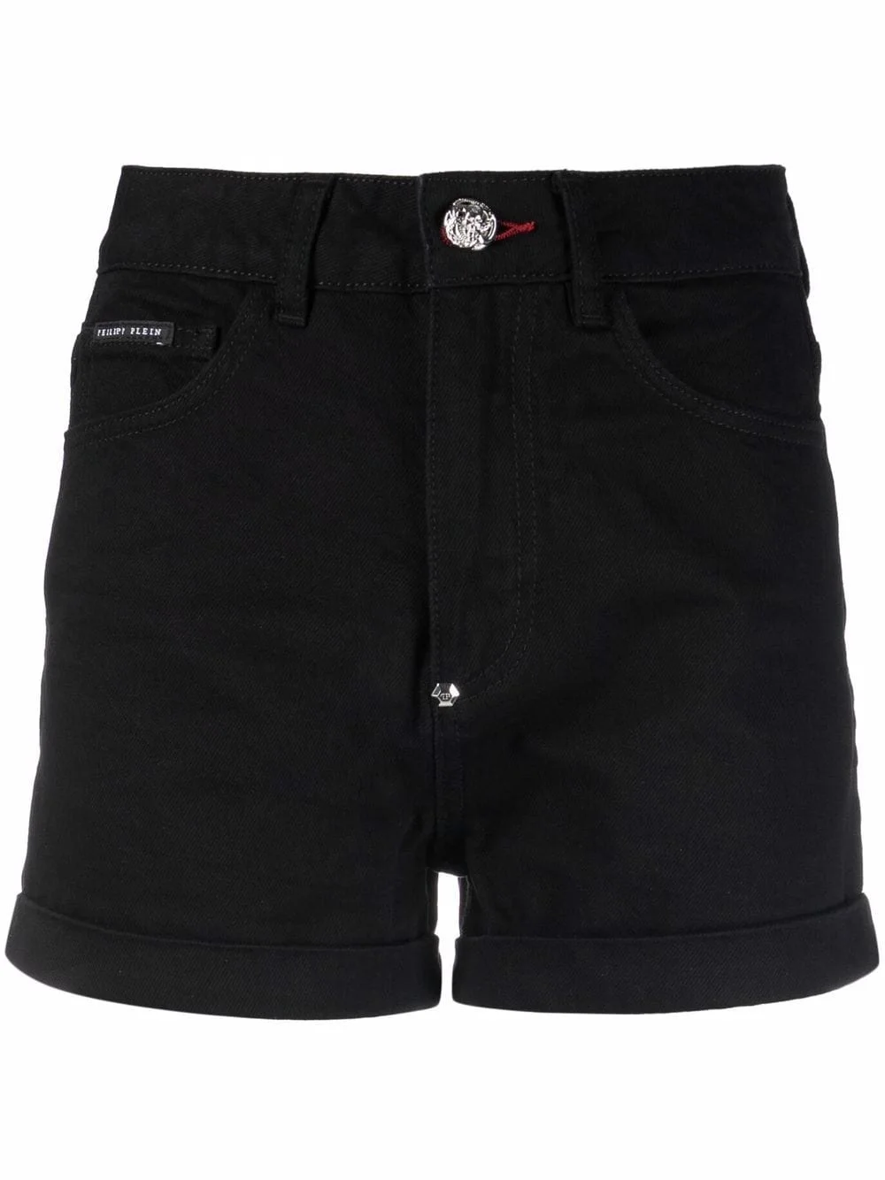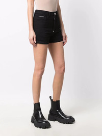 slim-cut hot shorts black cotton logo patch to the front high waist belt loops front button and zip fastening classic five pockets Imported Composition Outer: Cotton 100% Lining: Polyester 65%, Cotton 35% SIZE & FIT Model measurements Height 5 ft 9 in(1.75 m) Bust/Chest 32.67 in(83 cm) Hips 36.22 in(92 cm) Waist 24.8 in(63 cm) FittingInformation This piece fits true to size. We recommend you get your regular size Cut for a slim fit Made with a mid-weight non-stretch fabric Washing instructions Hand Wash