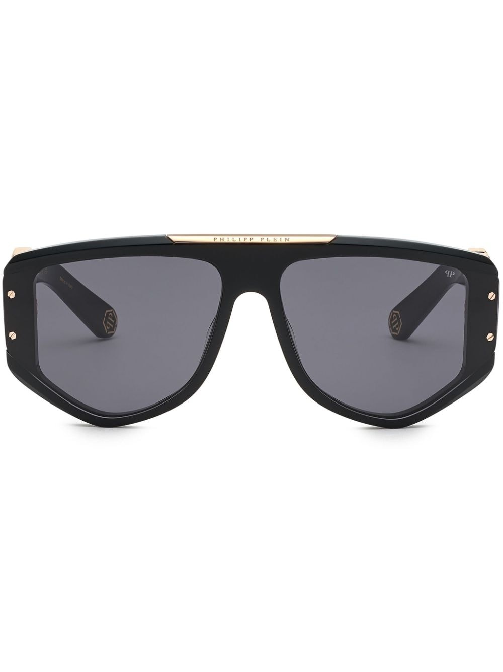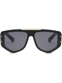 Rectangular logo-plaque sunglasses Highlights - Black - Acetate - Blue tinted lenses - Oversize frame - Logo plaque at the arm - Sculpted arms - Curved tips - These glasses come with a protective case. Made in Italy Composition Acetate 100%
