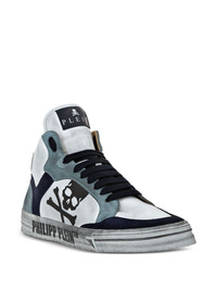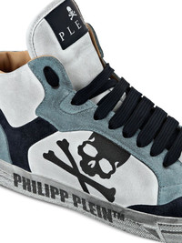 Retrokickz high-top sneakers Highlights - White/blue - Front lace-up fastening - Round toe - Perforated detail - Branded insole - Logo at the sole - Skull-print - Rubber sole Made in Italy Composition Outer: Calf Suede 100%, Nappa Leather 100% Lining: Fabric 100% Sole: Rubber 100%