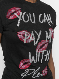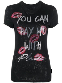 rhinestone-embellished T-shirt Highlights - Rhinestone-design cotton t-shirt from philipp plein featuring black, cotton, rhinestone embellishment, graphic print to the front, round neck, short sleeves and straight hem. Imported Composition Cotton 100% SIZE & FIT Model measurements Height 5 ft 10 in(1.77 m) Bust/Chest 34.64 in(88 cm) Hips 35.43 in(90 cm) Waist 24.8 in(63 cm) Washing instructions Hand Wash