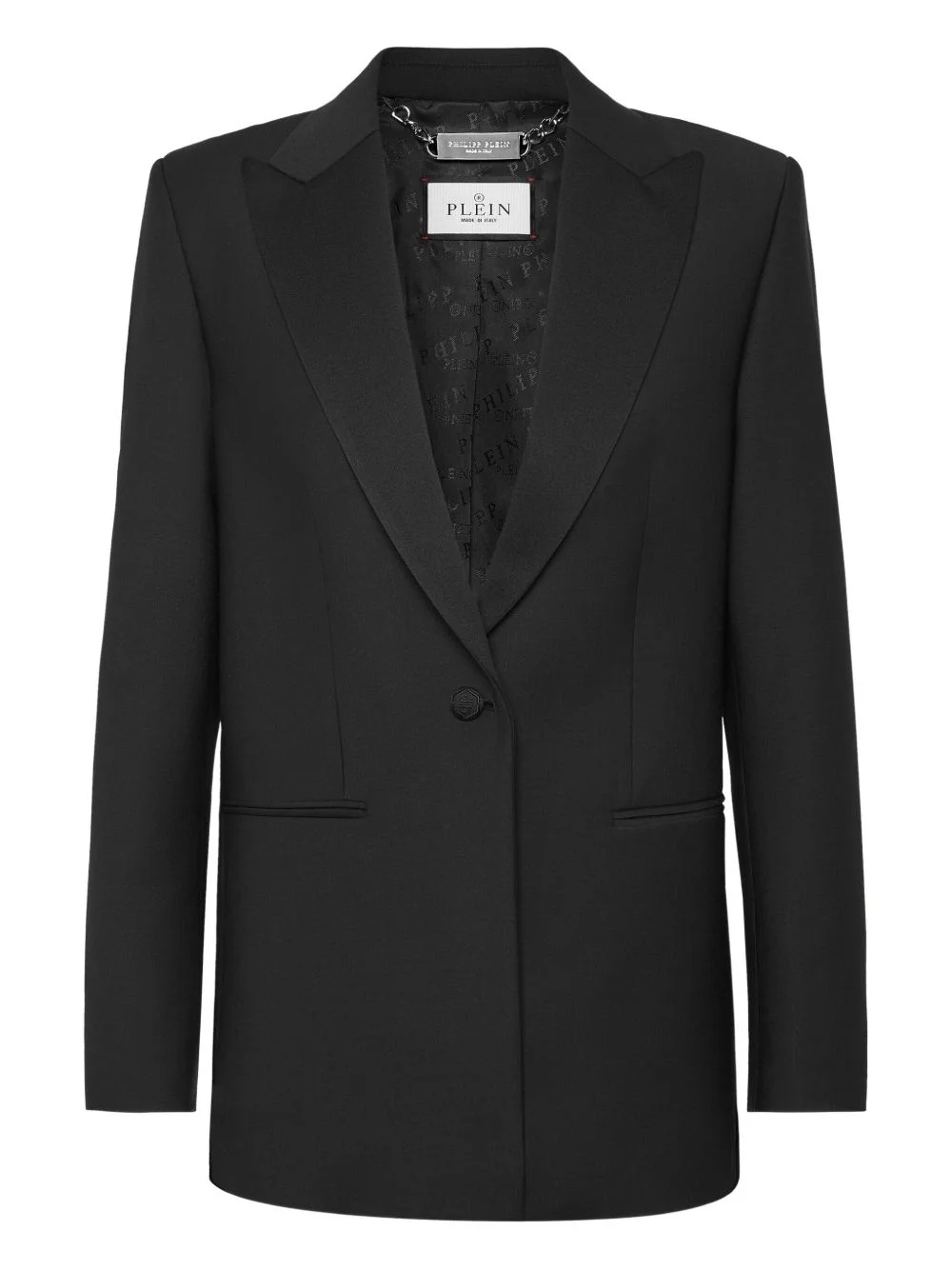 rhinestone-embellished blazer Highlights - Black - Single-button fastening - Peak lapel - Rhinestone embellishment - Graffiti lettering - Long sleeves Made in Italy Composition Wool 100% Washing instructions Read Manufacturer Guidelines
