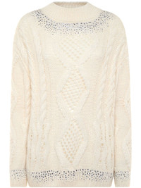 rhinestone-embellished cable-knit sweater Highlights - Off-white - Wool blend - Cable knit - Rhinestone embellishment - Crew neck - Long sleeves - Straight hem Made in Italy Composition Wool 50%, Acrylic 40%, Alpaca 10%