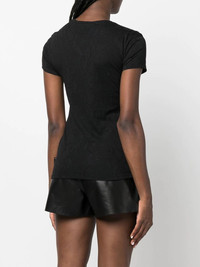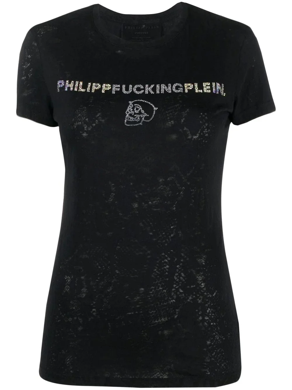 rhinestone-embellished cotton T-shirt black cotton rhinestone embellishment skull print to the front logo print to the front round neck short sleeves straight hem Imported Composition Cotton 100% SIZE & FIT Model measurements Height 5 ft 10 in(1.77 m) Bust/Chest 34.64 in(88 cm) Hips 35.43 in(90 cm) Waist 24.8 in(63 cm) FittingInformation This piece fits true to size. We recommend you get your regular size Cut for a slim fit Made with a mid-weight fabric Washing instructions Hand Wash