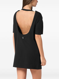 rhinestone-embellished dress Highlights - Black - Rhinestone embellishment - Short sleeves - Open back - Round neck - Straight hem Imported Composition Viscose 100%, Cotton 100%, Resin 100%, glass 100% Washing instructions Read Manufacturer Guidelines