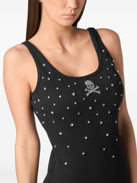 rhinestone-embellished dress Highlights - Black - Rhinestone embellishment - Ribbed knit - Scoop neck - Sleeveless - Straight hem Imported Composition glass 100%, Metal 100%, Cotton 95%, Spandex/Elastane 5%