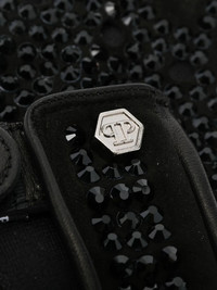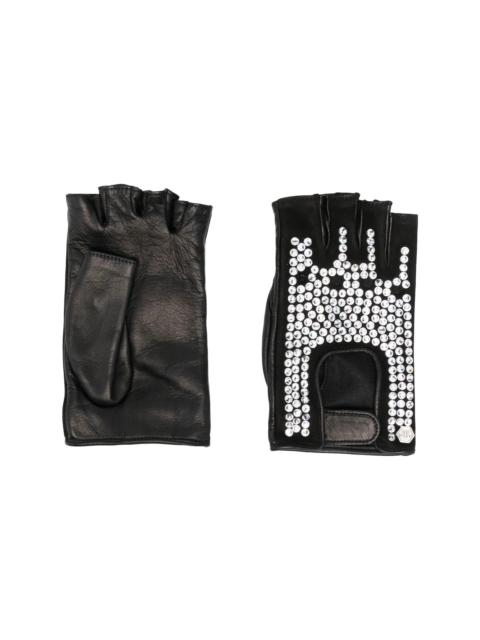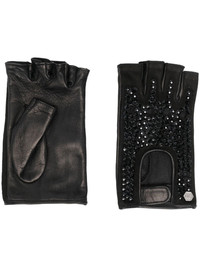 crystal-embellished leather gloves black crystal embellishment silver-tone logo plaque fingerless design silk lining Made in Italy Composition Calf Leather 100%, Silk 100%