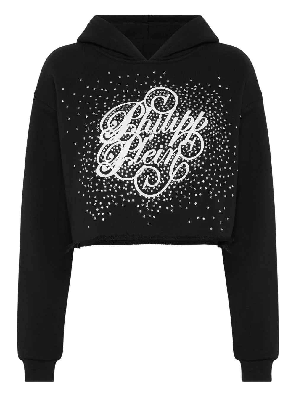 rhinestone-embellished hoodie Highlights - Black - Classic hood - Long sleeves - Cropped - Ribbed cuffs Imported Composition glass 100%, Cotton 88%, Polyester 12%