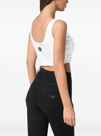 rhinestone-embellished jersey top Highlights - White - Rhinestone embellishment - Logo embellishment - Scoop neck - Sleeveless Imported Composition glass 100%, Brass 100%, Cotton 95%, Elastane 5%