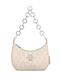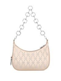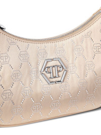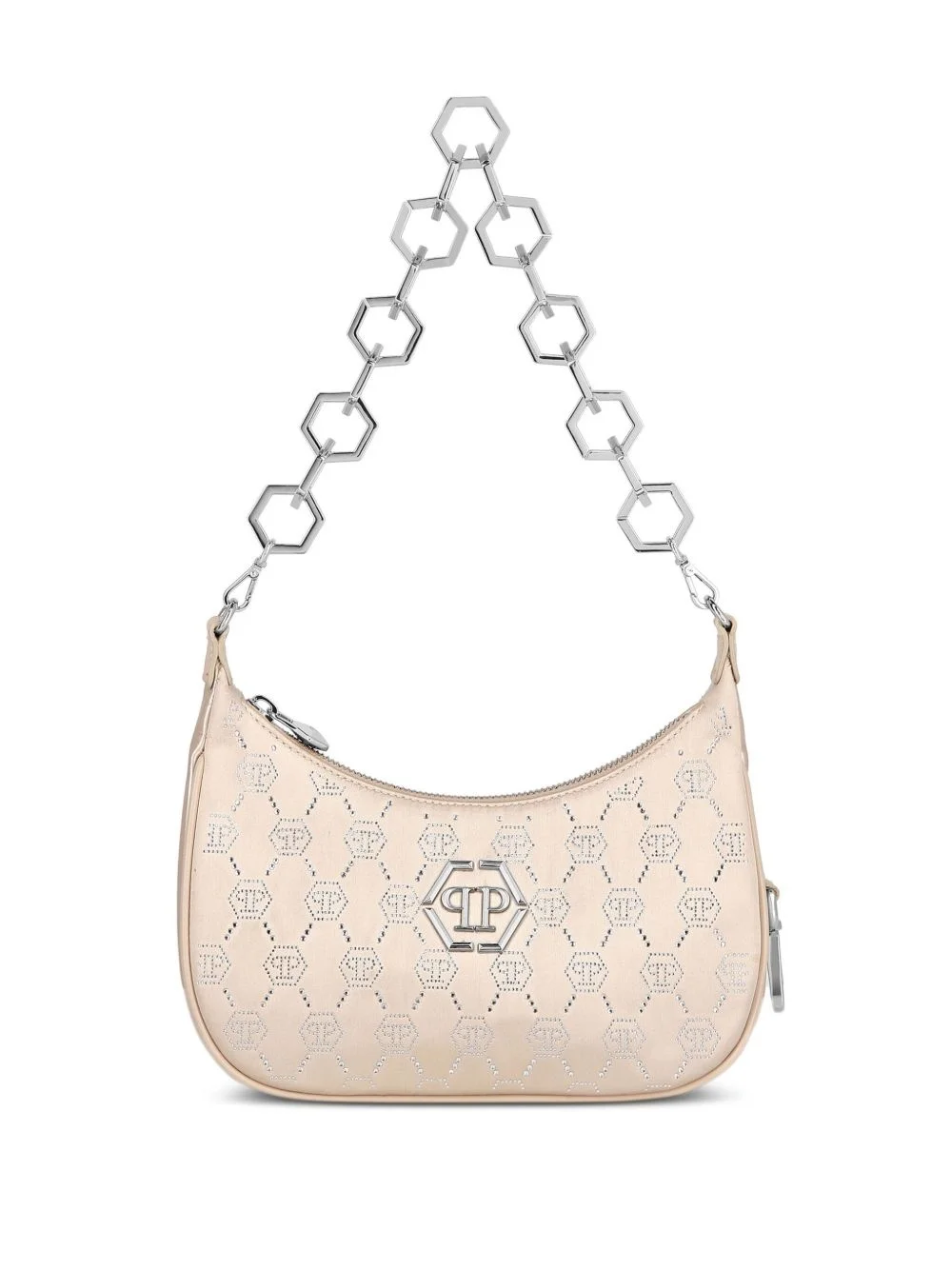 rhinestone-embellished monogram shoulder bag Highlights - Beige - Top zip fastening - Chain-link shoulder strap - Contrast lining - Contrast lining Made in Italy Composition Outer: glass 100%, Fabric 100%