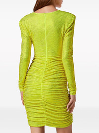 rhinestone-embellished ruched mini dress Highlights - Fluo yellow - Stretch-design - Rhinestone embellishment - Ruched detailing - Logo plaque to the side - Plunging v-neck - Shoulder pads - Concealed rear zip fastening - Long sleeves Imported Composition Polyester 93%, Elastane 7% Washing instructions Read Manufacturer Guidelines