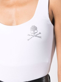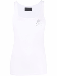 rhinestone-embellished skull top Highlights - White - Stretch-modal - Stretch-design - Skull patch detail - Rhinestone embellishment - Logo patch to the rear - Logo patch to the rear - Sleeveless - Scoop neck Imported Composition Modal 95%, Spandex/Elastane 5% SIZE & FIT Model measurements Height 5 ft 10 in(1.78 m) Bust/Chest 33.07 in(84 cm) Hips 36.61 in(93 cm) Waist 24.8 in(63 cm) FittingInformation This piece fits true to size. We recommend you get your regular size Cut for a slim fit Made with a mid-weight stretch fabric Washing instructions Hand Wash