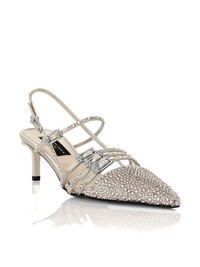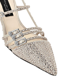 rhinestone-embellished slingback pumps Highlights - Beige - Pointed toe - Multi-strap design - Crystal detailing - Mid heel Made in Italy Composition Outer: Fabric 100%, glass 100% Sole: Calf Leather 100% Lining: Calf Leather 100%