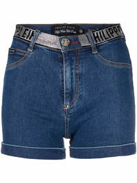 logo-embellished denim shorts Philipp Plein is known for its rhinestone embellishments and these stretch cotton denim shorts are no exception. Case in Point: this pair draws the eye with their sparkling rhinestone logo waistband. Highlights - Blue - Stretch cotton - Rhinestone embellishment - Logo waistband - Classic five pockets Imported Composition Outer: Cotton 92%, Polyester 6%, Spandex/Elastane 2% Lining: Polyester 65%, Cotton 35% SIZE & FIT Model measurements Height 5 ft 10 in(1.77 m) Bust/Chest 32.67 in(83 cm) Hips 35.43 in(90 cm) Waist 23.62 in(60 cm) FittingInformation This piece fits small – you might want to get one size up Cut for a close fit Made with a mid-weight stretch fabric Washing instructions Dry Clean Only