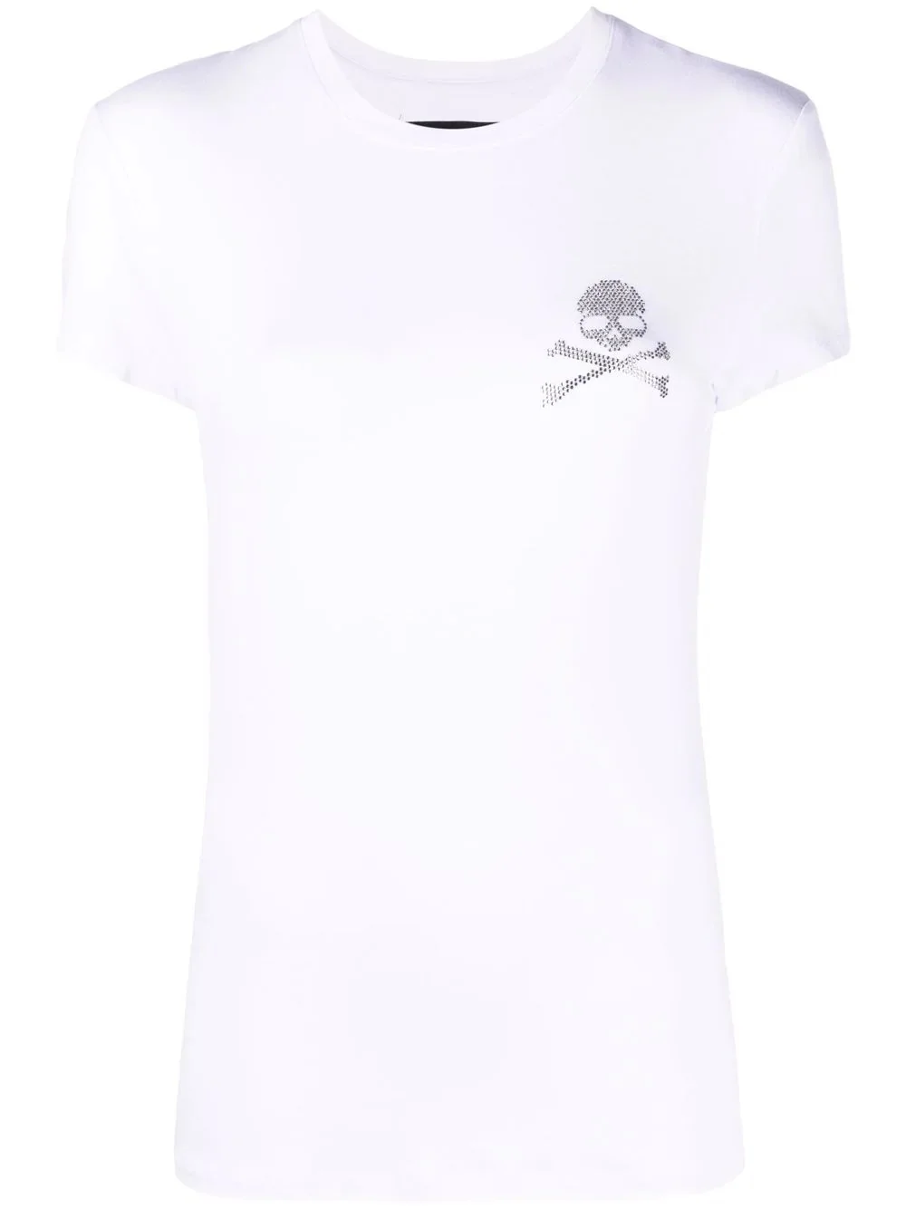 rhinestone-skull T-shirt Highlights - White - Stretch-modal - Rhinestone embellishment - Skull patch detail - Logo patch to the rear - Round neck - Short sleeves - Straight hem Imported Composition Modal 95%, Spandex/Elastane 5% SIZE & FIT Model measurements Height 5 ft 10 in(1.78 m) Bust/Chest 33.07 in(84 cm) Hips 36.61 in(93 cm) Waist 24.8 in(63 cm) FittingInformation This piece fits true to size. We recommend you get your regular size Cut for a slim fit Made with a mid-weight stretch fabric Washing instructions Hand Wash