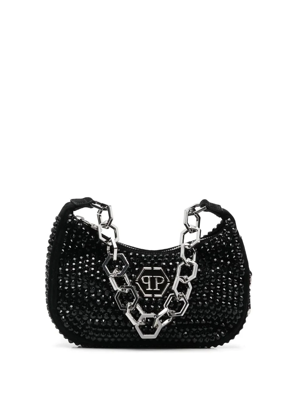 crystal-embellished tote bag black calf leather crystal embellishment silver-tone logo plaque top zip fastening chain-link shoulder strap main compartment internal logo patch Made in Italy Composition Outer: Calf Leather 100%, glass 100% Lining: Polyester 100%, Polyamide 50%, Polyurethane 50% SIZE & FIT Model measurements Height 5 ft 11 in(1.8 m) Bust/Chest 31.49 in(80 cm) Hips 35.43 in(90 cm) Waist 24.4 in(62 cm) Measurement DEPTH 2.75 in(7 cm) HANDLE 7.87 in(20 cm) HEIGHT 5.11 in(13 cm) WIDTH 8.66 in(22 cm)