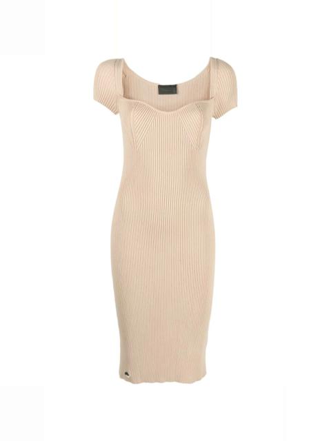 rib-knit midi dress Philipp Plein diverts from their typically bold style in this rib-knit midi dress. Crafted in a neutral beige hue with a simplified sweetheart neckline, details are kept minimal with just a small gold-tone logo plaque at the hem. Made in Italy Composition Viscose 70%, Polyester 30% SIZE & FIT Model measurements Height 6 ft 2 in(1.89 m) Bust/Chest 36.22 in(92 cm) Hips 37.79 in(96 cm) Waist 29.52 in(75 cm) FittingInformation This piece fits true to size. We recommend you get your regular size Cut for a slim fit Made with a mid-weight fabric Washing instructions Hand Wash