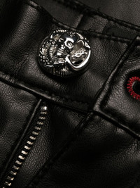 ribbed-knee high-waist leggings black faux leather logo patch to the rear ribbed-knee detailing skinny cut high-waisted skull stud detailing classic five pockets concealed fly and button fastening belt loops Imported Composition Lining: Polyester 65%, Cotton 35% Outer: Polyester 46%, Polyvinyl Acetate (PVA) 43%, Polyurethane 11% Washing instructions Dry Clean Only
