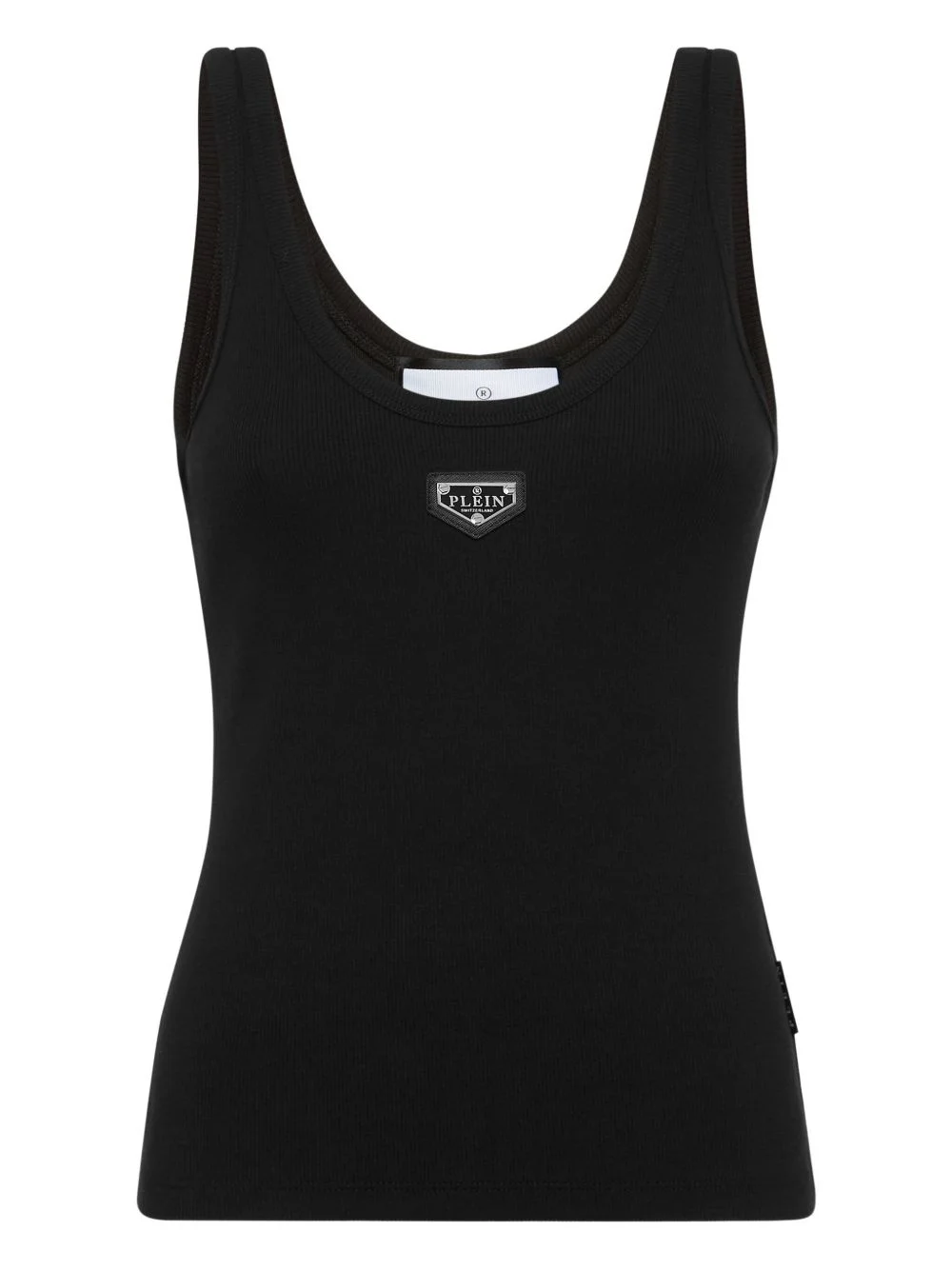 ribbed tank top Highlights - Black - Logo plaque - Scoop neck - Sleeveless Imported Composition Cotton 48%, Modal 48%, Spandex/Elastane 4%