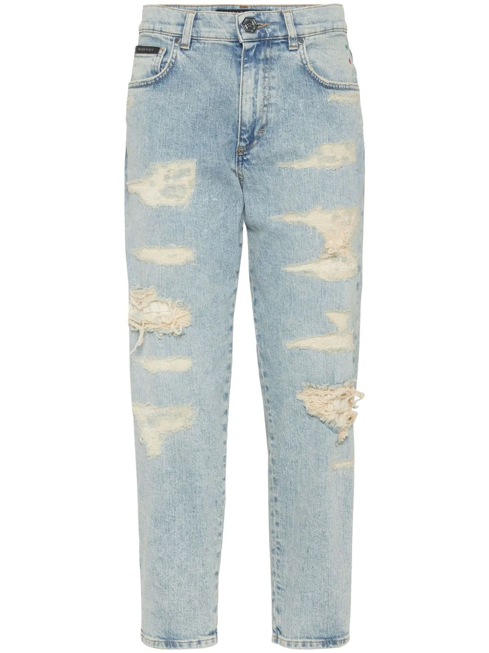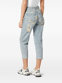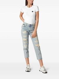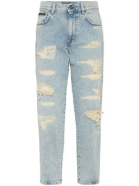 ripped cropped jeans Highlights - Blue - Ripped detailing - Front button fastening - Belt loops - Classic five pockets - Cropped leg Made in Italy Composition Outer: Cotton 99%, Elastane 1% Lining: Polyester 65%, Cotton 35%