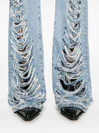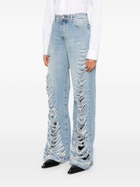 ripped trousers Highlights - Medium blue - Cotton - Washed denim - Ripped detailing - Button fly fastening - High-rise - Belt loops - Contrast stitching - Logo patch to the front - Crystal-embellished heart charm - Silver-tone logo plaque - Embroidered motif - Classic five pockets - Logo patch to the rear - Logo tag - Straight leg Made in Italy Composition Outer: Cotton 100% Lining: Polyester 65%, Cotton 35% SIZE & FIT Model measurements Height 5 ft 9 in(1.76 m) Bust/Chest 31.88 in(81 cm) Hips 35.43 in(90 cm) Waist 24.8 in(63 cm) FittingInformation Designed with a wide leg cut, these jeans allow for a close fit at the waist and offer a loose and roomy fit over the leg Sturdy and hard-wearing, this denim piece offers no stretch
