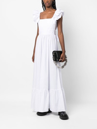 ruffle-detail maxi dress cloud white cotton bow detailing ruffled detailing square neck V-back flared skirt straight hem Made in Italy Composition Cotton 100% SIZE & FIT Model measurements Height 5 ft 10 in(1.77 m) Bust/Chest 29.92 in(76 cm) Hips 34.25 in(87 cm) Waist 23.62 in(60 cm) FittingInformation This piece fits true to size. We recommend you get your regular size Designed for a close fit at the bust and waist, but loose at the hip Made with a mid-weight non-stretch fabric Washing instructions Hand Wash
