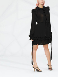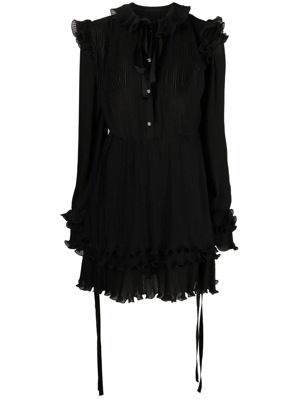 ruffled plisse midi dress Philipp Plein delves into a refined look in this classic black dress, adding decadence through the ruffled design and tie detailing. Made in Italy Composition Polyester 100% SIZE & FIT Model measurements Height 5 ft 10 in(1.78 m) Bust/Chest 32.28 in(82 cm) Hips 35.03 in(89 cm) Waist 23.22 in(59 cm) FittingInformation This piece fits true to size. We recommend you get your regular size Designed for a loose fit with a close fit at the waist Made with a mid-weight non-stretch fabric