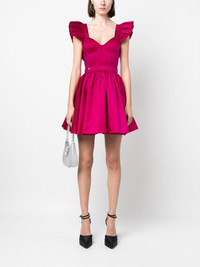 ruffled-sleeve silk mini dress fuchsia pink silk ruffled detailing sweetheart neck sleeveless boned bodice concealed rear zip fastening flared skirt Imported Composition Outer: Silk 100% Lining: Polyester 100% SIZE & FIT Model measurements Height 5 ft 10 in(1.78 m) Bust/Chest 33.46 in(85 cm) Hips 36.22 in(92 cm) Waist 23.22 in(59 cm) FittingInformation Designed for a close fit at the chest and waist with a loose fit at the hip Made from a midweight non-stretch fabric This piece fits true to size – take your usual size Washing instructions Dry Clean Only