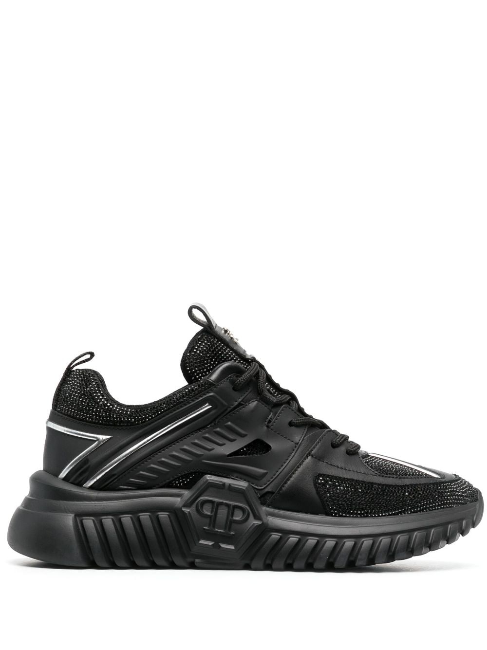 skull-appliqué low-top sneakers Highlights - Black - Panelled design - Rhinestone embellishment - Skull appliqu㩠- Embossed logo to the side - Round toe - Front lace-up fastening - Pull-tab at the tongue and heel - Branded insole - Chunky rubber sole Made in Italy Composition Outer: Fabric 100%, Rubber 100% Sole: Rubber 100% Lining: Fabric 100% SIZE & FIT Measurement HEEL 1.77 in(4.5 cm) Sole height 0.98 in(2.5 cm)