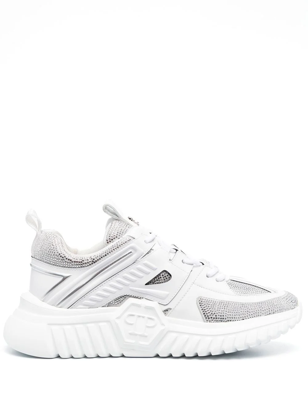 leather rhinestone-embellished runner sneakers white calf leather rhinestone embellishment logo patch at the tongue panelled design front lace-up fastening rubber sole Made in Italy Composition Leather 100% SIZE & FIT Measurement HEEL 2.16 in(5.5 cm) Sole height 1.18 in(3 cm)