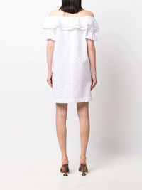 Sangallo lace dress white floral-lace detailing ruffled detailing logo plaque off-shoulder short sleeves Made in Italy Composition Cotton 100% SIZE & FIT Model measurements Height 5 ft 10 in(1.78 m) Bust/Chest 31.49 in(80 cm) Hips 36.22 in(92 cm) Waist 25.59 in(65 cm) Washing instructions Machine Wash