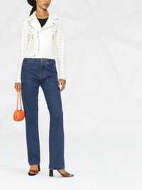 Sangallo leather biker jacket white lambskin notched collar front zip fastening pockets front zip fastening long sleeves Imported Composition Outer: Lamb Skin 100% Lining: Polyester 97%, Spandex/Elastane 3% SIZE & FIT Model measurements Height 5 ft 10 in(1.78 m) Bust/Chest 30.31 in(77 cm) Hips 36.61 in(93 cm) Waist 24.8 in(63 cm) FittingInformation This piece fits true to size. We recommend you get your regular size Cut for a slim fit Made with a mid-weight fabric