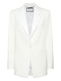 satin-lapels embroidered blazer Highlights - White - Satin lapels - Single button fastening - Embroidered lettering - Straight hem Made in Italy Composition Outer: Polyester 55%, Wool 45% Lining: Viscose 51%, Acetate 49% Washing instructions Read Manufacturer Guidelines