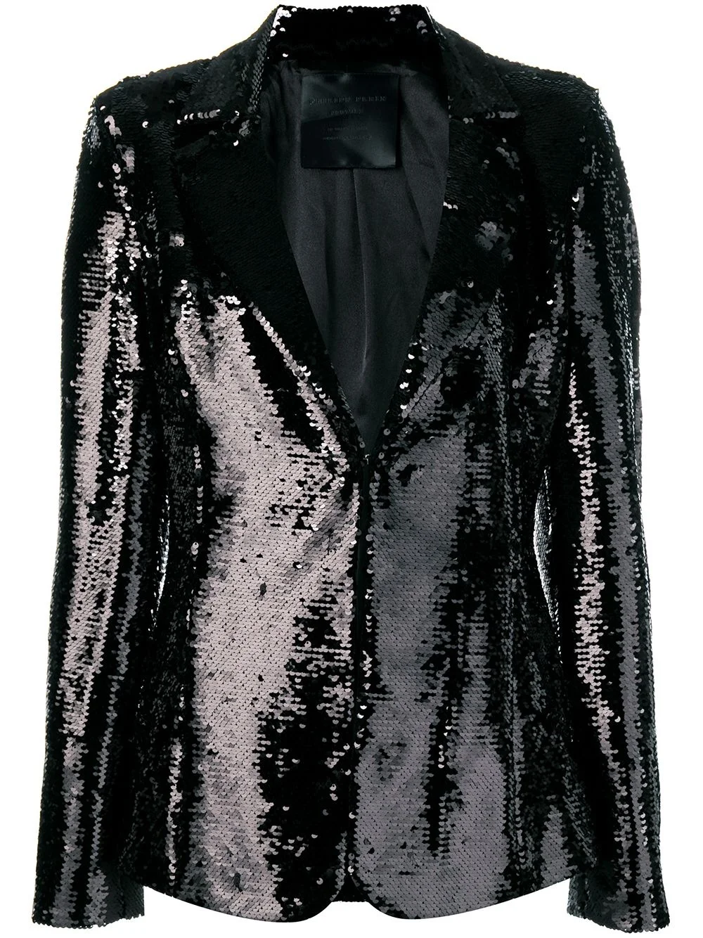 sequin embellished blazer German fashion designer Philipp Plein is renowned for his dark aesthetic, which is evident in this black sequin embellished blazer from the label's AW18 collection. Designed and made in Italy, the blazer features notched lapels, a hook & eye fastening, long sleeves, a full lining and a curved hemline. Made in Italy Composition Outer: Polyester 100% Lining: Polyester 97%, Spandex/Elastane 3% SIZE & FIT Model measurements Height 5 ft 10 in(1.78 m) Bust/Chest 33.46 in(85 cm) Hips 36.22 in(92 cm) Waist 23.22 in(59 cm) Washing instructions Dry Clean Only
