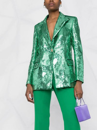 sequin-embellished blazer green sequin embellishment peak lapels button fastening long sleeves Made in Italy Composition Lining: Viscose 100% Outer: Polyester 100% SIZE & FIT Model measurements Height 5 ft 11 in(1.8 m) Bust/Chest 31.49 in(80 cm) Hips 36.61 in(93 cm) Waist 24.4 in(62 cm) FittingInformation This piece fits true to size. We recommend you get your regular size Cut for a slim fit Made with a mid-weight non-stretch fabric Washing instructions Dry Clean Only