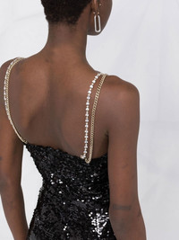 sequin embellished midi dress Philipp Plein ensures every element of this black midi dress glimmers in the light with its ornate sequin body. The chain and crystal-embellished spaghetti straps add another layer of grandeur to the piece. Made in Italy Composition Polyester 100% SIZE & FIT Model measurements Height 5 ft 11 in(1.8 m) Bust/Chest 32.67 in(83 cm) Hips 36.22 in(92 cm) Waist 24.4 in(62 cm) FittingInformation This piece fits true to size. We recommend you get your regular size Cut for a slim fit Made with a mid-weight fabric Washing instructions Hand Wash