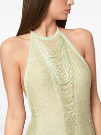 sequin-embellished mini dress Highlights - Light green - Halterneck - Open back - Fringe detailing - Straight hem Made in Italy Composition Silk 64%, Polyester 33%, Polyamide 3%