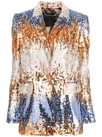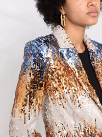 sequin single-breasted blazer Philipp Plein is known for its shimmering designs courtesy of its signature rhinestone detailing. Encapsulating the house's bright aesthetic, the designer switches crystals for sequins as showcased on this single-breasted blazer that features an eye-catching blue and gold-tone sequin construction. Made in Italy Composition Outer: Polyester 100% Lining: Polyester 100% SIZE & FIT Model measurements Height 5 ft 10 in(1.79 m) Bust/Chest 34.25 in(87 cm) Hips 37 in(94 cm) Waist 25.19 in(64 cm) FittingInformation This piece fits true to size. We recommend you get your regular size Cut for a loose fit Made with a mid-weight fabric Washing instructions Dry Clean Only