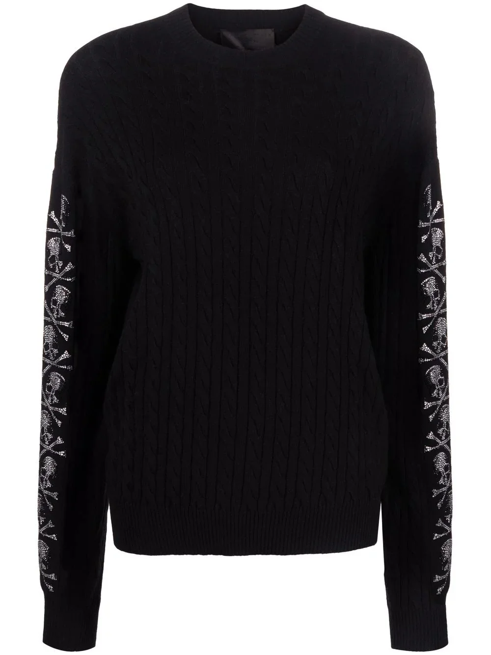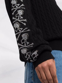 sequin skull pullover jumper This black pullover jumper provides comfort with its wool-cashmere blend fabric and is instantly recognisable as a design by Philipp Plein with sequin embellished skull motifs decorating the long sleeves. Made in Italy Composition Polyamide 35%, Wool 30%, Viscose 30%, Cashmere 5% SIZE & FIT Model measurements Height 5 ft 10 in(1.77 m) Bust/Chest 31.49 in(80 cm) Hips 36.22 in(92 cm) Waist 22.44 in(57 cm) FittingInformation This piece fits true to size. We recommend you get your regular size Cut for a loose fit Made with a mid-weight fabric Washing instructions Hand Wash