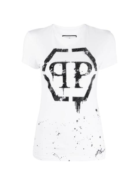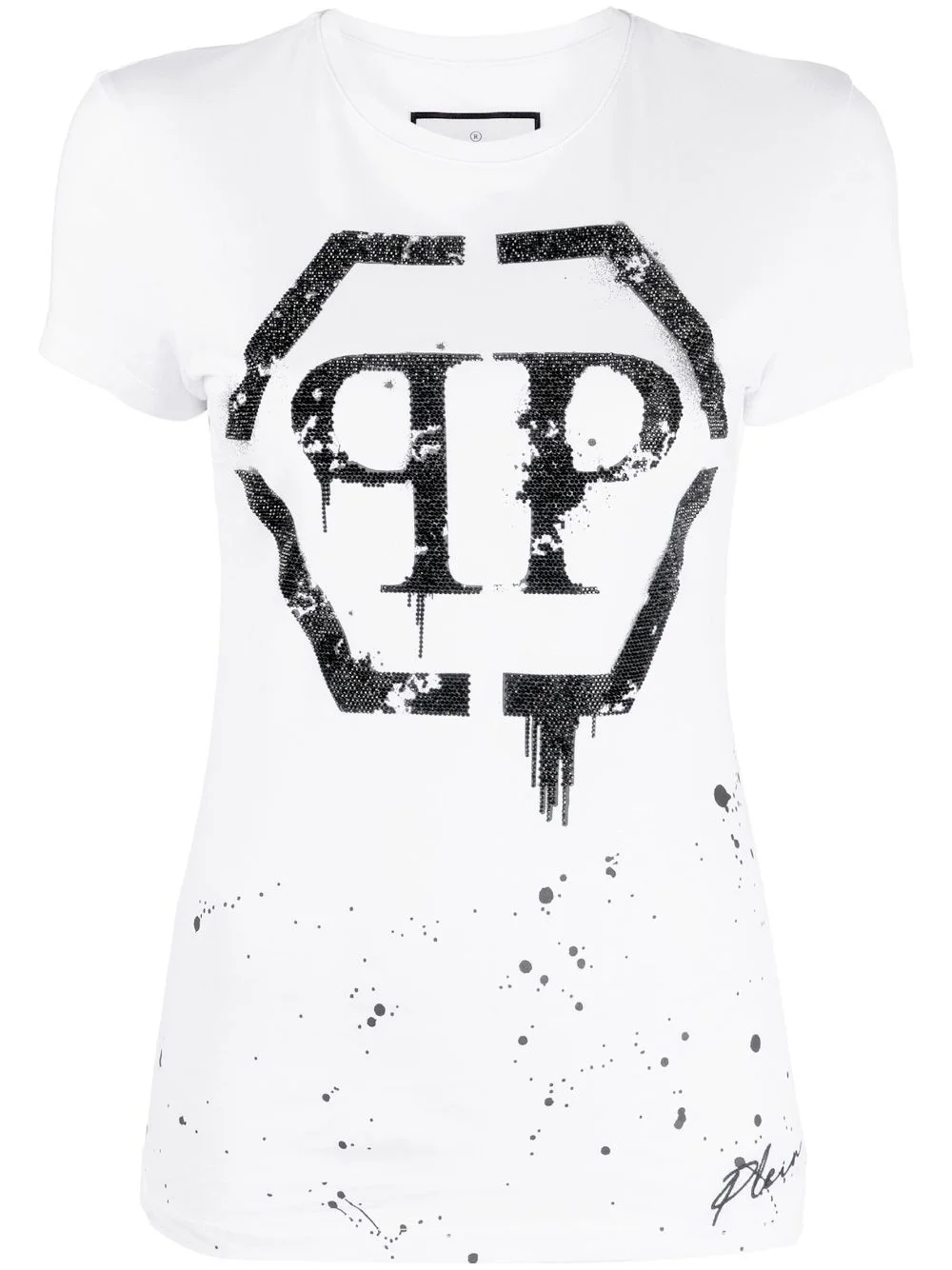 Sexy Pure Fit Hexagon T-shirt Highlights - White/black - Stretch-cotton - Paint splatter detail - Logo print to the front - Logo plaque - Round neck - Short sleeves - Straight hem Imported Composition Cotton 75%, Polyester 20%, Elastane 5% SIZE & FIT Model measurements Height 5 ft 11 in(1.8 m) Bust/Chest 31.88 in(81 cm) Hips 35.03 in(89 cm) Waist 24.01 in(61 cm) FittingInformation Designed for a slim fit that sits just away from the body offering a close yet comfortable fit Made from a midweight stretch fabric, this piece offers elasticity and flexibility when worn This piece fits small – take one size up Washing instructions Hand Wash