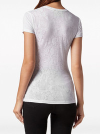 Sexy Pure Gothic Plein crystals-embellishment burn out T-shirt Highlights - White - Cotton - All-over tonal snakeskin print - Crystal embellishment - Logo print to the front - Logo tag to the side - Round neck - Short sleeves - Straight hem Imported Composition Cotton 100% Washing instructions Read Manufacturer Guidelines